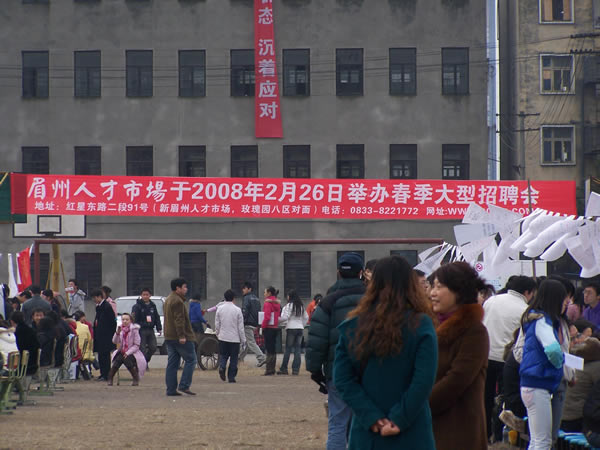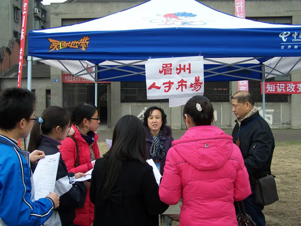 2007年12月31日上午10時,眉州人才市場與眉山職業(yè)技術學院聯(lián)合舉辦的“2008屆畢業(yè)生雙選會”隆重開幕,此次盛會是眉州人才市場與眉山職業(yè)技術學院為解決應屆畢業(yè)生就業(yè)的重大舉措,推進了該校畢業(yè)生就業(yè)工作,促進畢業(yè)生充分就業(yè),為用人單位和畢業(yè)生提供一個雙向選擇的平臺,此次盛會有近150家招聘單位蒞臨招聘,2000余名求職者到會求職。
